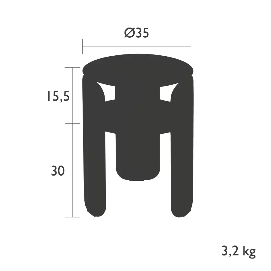 De Bebop bijzettafel Ø 35cm van Fermob heeft een diameter van 35 centimeter en is 45,5 centimeter hoog. De bijzettafel weegt 3,2 kilogram en is volledig gemaakt van aluminium. De Bebop bijzettafel is bestand tegen de zon (UV-resistant) en is verkrijgbaar in veel verschillende kleuren.