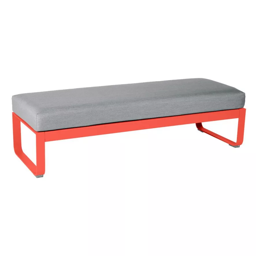 De Bellevie eetbank kussen flannelgrijs van het Franse merk Fermob is 148 centimeter lang, 53 centimeter breed en 41 centimeter hoog. De eettabel heeft een plaatstalen zitting en een frame gemaakt van aluminium. De eetbank weegt 21,2 kilogram. Bellevie is verkrijgbaar in verschillende kleuren. Elke kleur is kleurvast en zal daardoor niet verbleken in de zon. De eetbank heeft een goede weersbestendigheid.