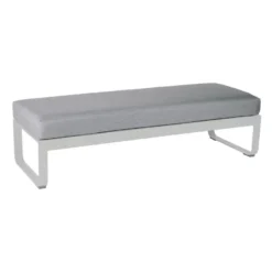 De Bellevie eetbank kussen flannelgrijs van het Franse merk Fermob is 148 centimeter lang, 53 centimeter breed en 41 centimeter hoog. De eettabel heeft een plaatstalen zitting en een frame gemaakt van aluminium. De eetbank weegt 21,2 kilogram. Bellevie is verkrijgbaar in verschillende kleuren. Elke kleur is kleurvast en zal daardoor niet verbleken in de zon. De eetbank heeft een goede weersbestendigheid.