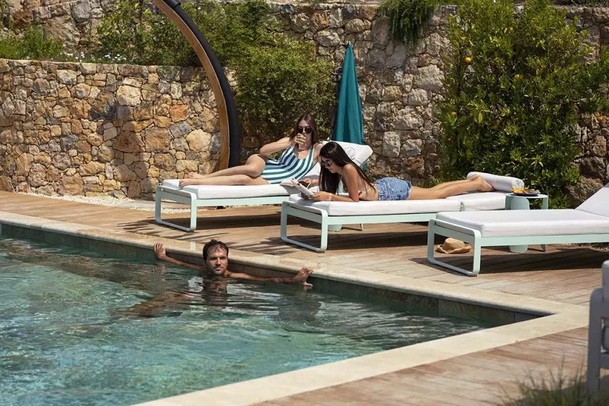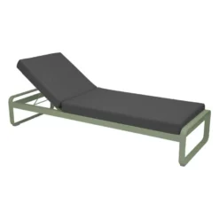 Het Bellevie ligbed kussen antraciet van Fermob is ontworpen door Pagnon en Pelhaître. Het ligbed heeft en lengte van 200 centimeter, een breedte van 74,5 centimeter en een hoogte van 38,5 centimeter tot 74,5 centimeter (de rugleuning is in hoogte verstelbaar). De lighoogte bedraagt 38,5 centimeter. Het ligbed frame is gemaakt van aluminium, afgewerkt met een poedercoating en het kussen is bekleed met een Sunbrella stof. Deze is waterafstotend, uv-bestendig en anti-vlek en -schimmel. Daarnaast droogt het kussen snel en is hij resistent tegen scheuren. Je kan de kussenhoes reinigen op een dertig graden was in de wasmachine. Je vindt het ligbed in verschillende kleuren.