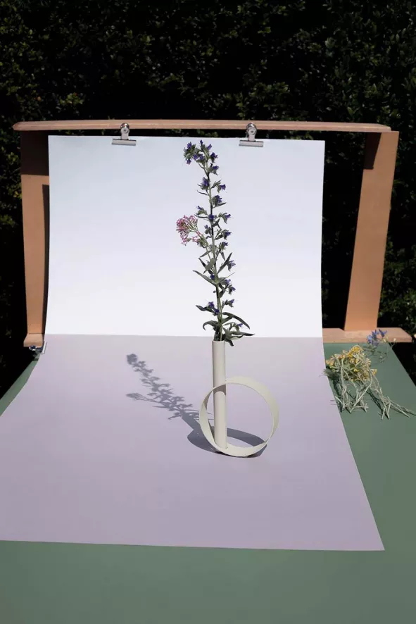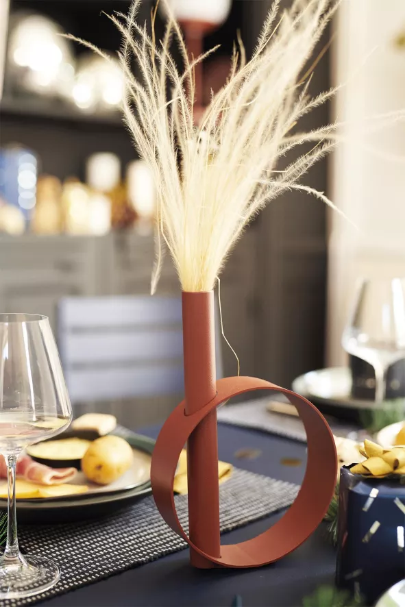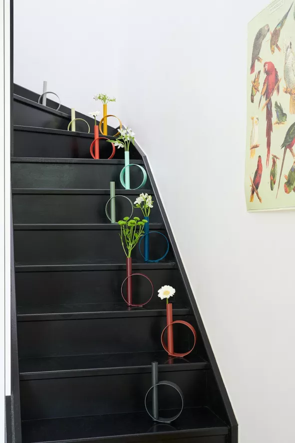 De Ios vaas van Fermob heeft een lengte van 15 centimeter, een breedte van 4,5 centimeter en een hoogte van 23 centimeter. De vaas is gemaakt van waterdicht aluminium en weegt 0,42 kilogram. Ios is verkrijgbaar in verschillende kleuren.