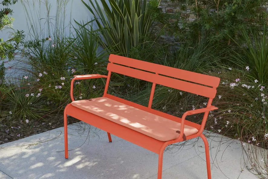 De Luxembourg tuinbank met rug en armleuning van Fermob is ontworpen door Frédéric Sofia. De bank is 131 centimeter breed, 55,5 centimeter diep en 86 centimeter hoog. De tuinbank heeft een zithoogte van 48 centimeter, een armleuning van 20,5 centimeter hoog en een gewicht van 11 kilogram. De bank heeft een buisvormig aluminium frame, een lattenbodem van gebogen aluminium en ene rug- en armleuning met aluminium lamellen. De tuinbank is slijtvast en is voorzien van een anti-UV, anti-corrosie poedercoating. De Luxembourg tuinbank met rug en armleuning is verkrijgbaar in verschillende kleuren.