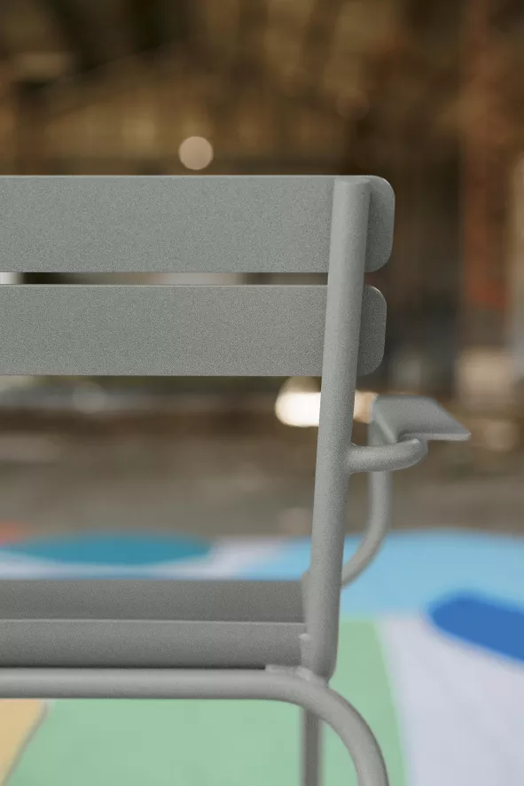 De Luxembourg tuinbank met rug en armleuning van Fermob is ontworpen door Frédéric Sofia. De bank is 131 centimeter breed, 55,5 centimeter diep en 86 centimeter hoog. De tuinbank heeft een zithoogte van 48 centimeter, een armleuning van 20,5 centimeter hoog en een gewicht van 11 kilogram. De bank heeft een buisvormig aluminium frame, een lattenbodem van gebogen aluminium en ene rug- en armleuning met aluminium lamellen. De tuinbank is slijtvast en is voorzien van een anti-UV, anti-corrosie poedercoating. De Luxembourg tuinbank met rug en armleuning is verkrijgbaar in verschillende kleuren.