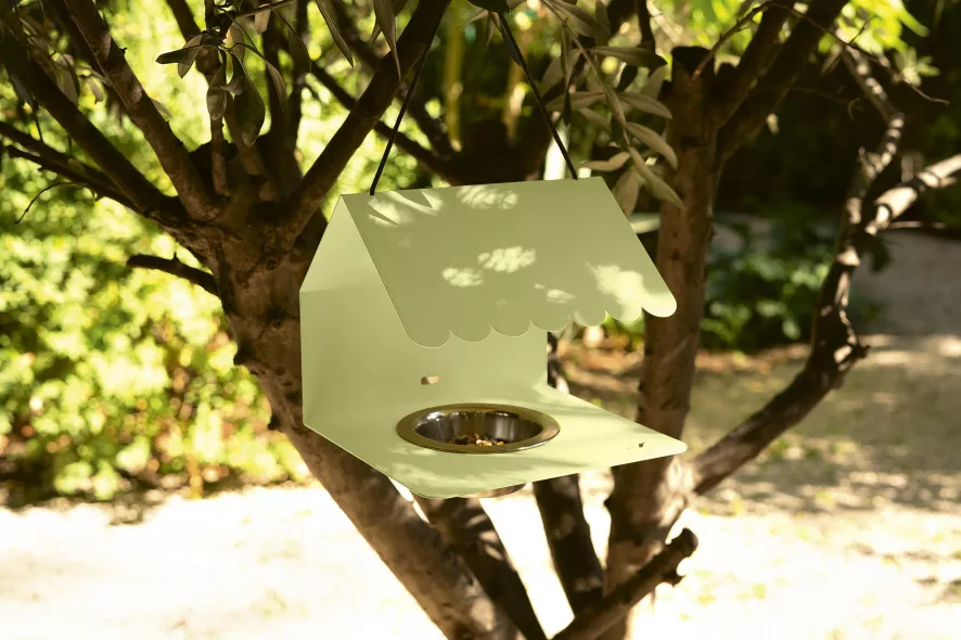 Het Picoti vogelvoerhuisje van Fermob is ontworpen door Catherine Sofia. Het huisje is 20 centimeter breed, 18 centimeter diep, 16,5 centimeter hoog en weegt 0,8 kilogram. Het vogelhuis heeft een stalen frame, een uitneembare roestvrijstalen kom en een 100% polyester buitenkoord. Het voederhuisje is voorzien van een dubbelbevestigingssysteem: een ophangkoord of schroeven (niet meegeleverd). Het Picoti vogelvoederhuisje is verkrijgbaar in verschillende kleuren.